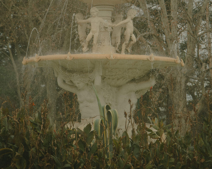Fine mist carries in the air, settling on surrounding flora. Forever unchanged, water cascades over the stone flooding the pool below.